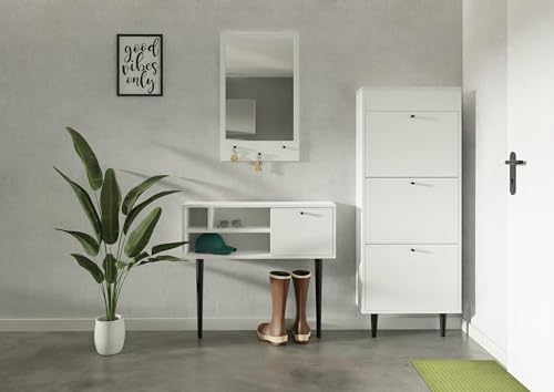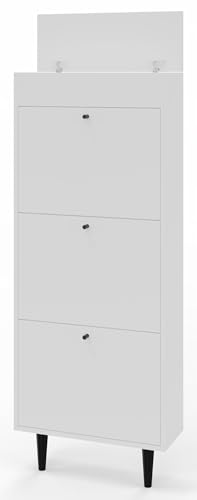 MATKAM - حذاء دوتي من ماتكام بتصميم عصري من سكاندي اوبتيك | قابل للطي وقابل للطي مع مشبك واحد | مع ساقين اثنين، تركيب على الحائط، خشب، أبيض