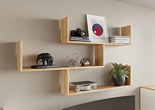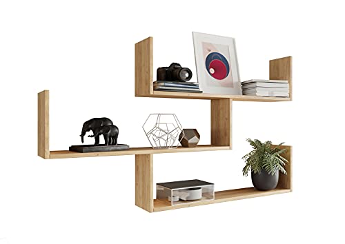 - Modern design: the wall shelf in an elegant, modern style consists of 3 interconnected hanging shelves and offers a generous storage space. Mounted on the wall, it gives it a certain lightness.