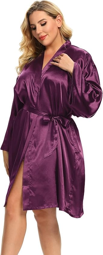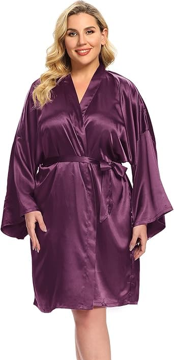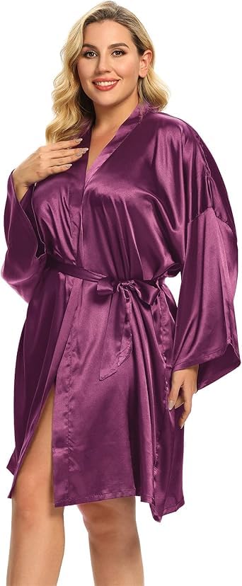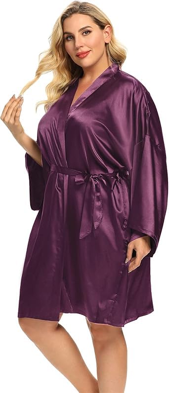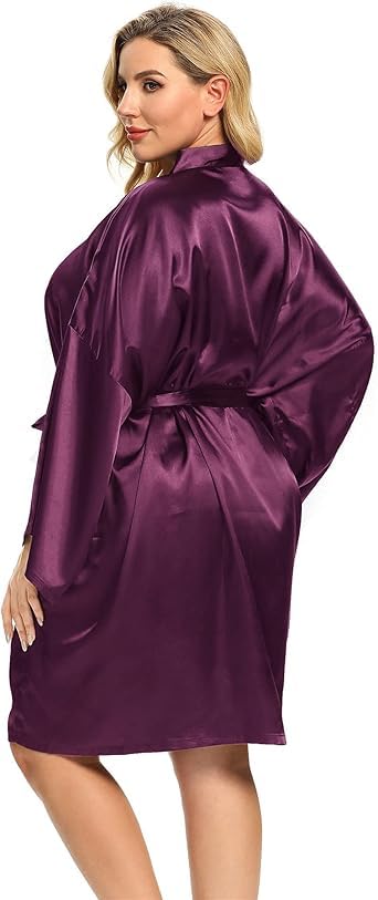 Generic - Mauve Women's Satin Short Lingerie Robe with Wide Sleeves Special Size 90:130kg