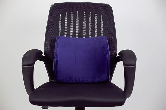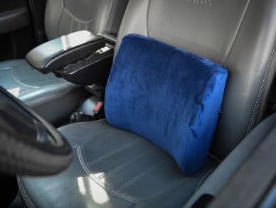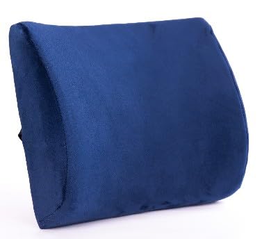 Max Comfort - مسند ضهر صغير طبي ميموري فوم من ماكس كومفورت لدعم أسفل الظهر للكرسي والمكتب والسيارة بغطاء قطيفة قابل للغسل , كحلي.