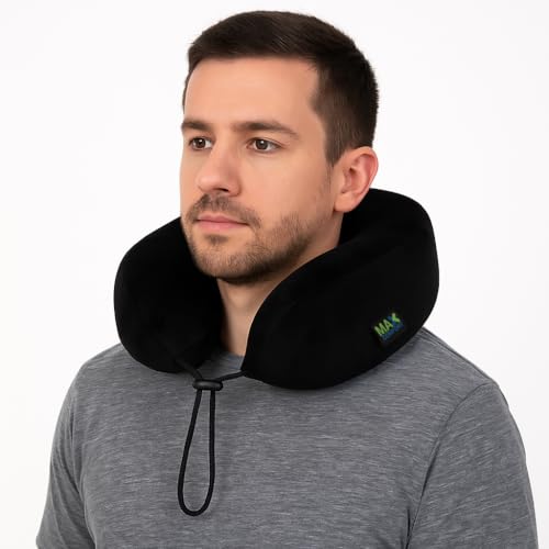 Max Comfort - Max Comfort Modern Medical Travel Neck Pillow – Comfortable American Memory Foam for Neck and Vertebra Support – Black