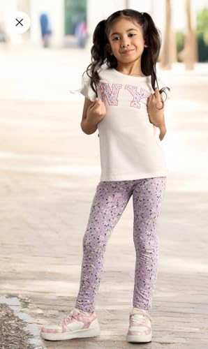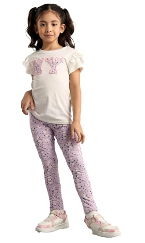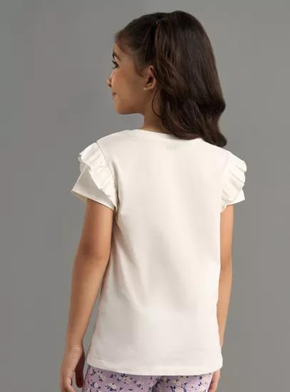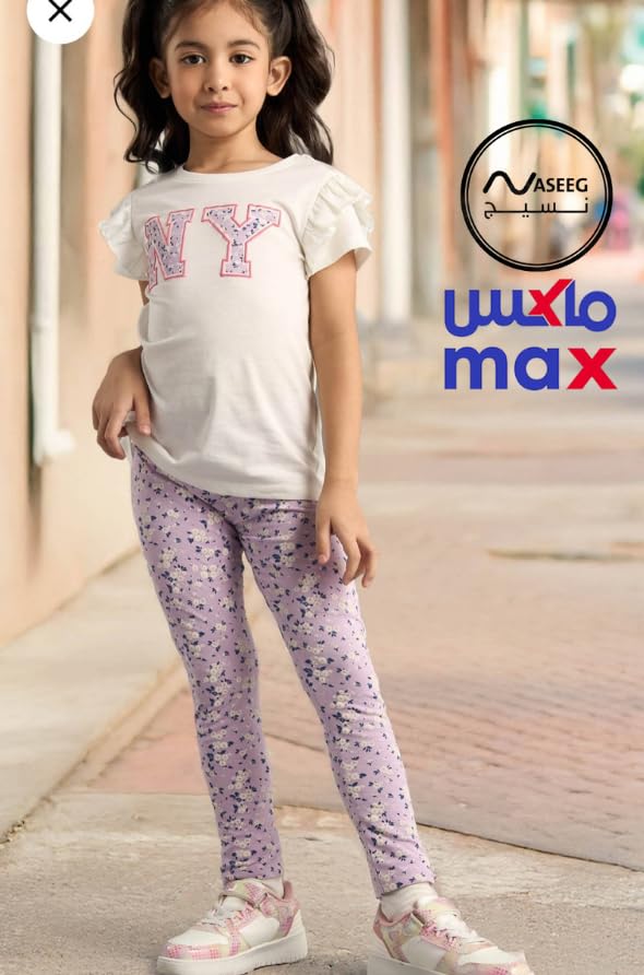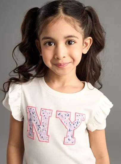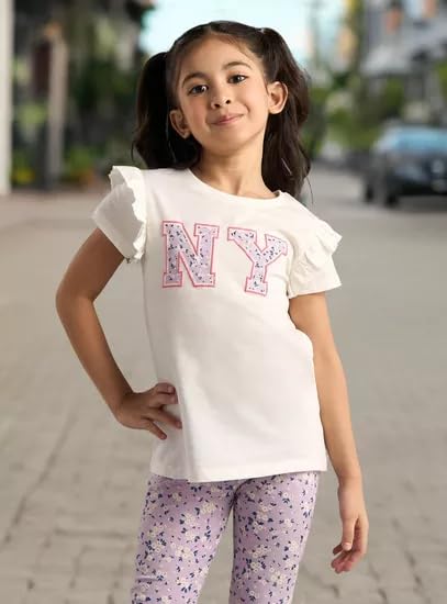 Generic - MAX, Girls' NY 2 Pieces, White Cotton Short Sleeve Top with Ruffled Sleeves, Casual Printed Design for Ages 2-8 Years