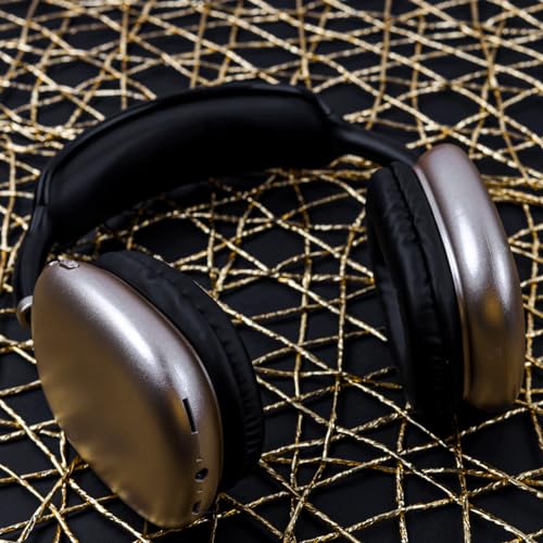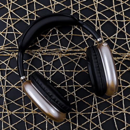 Generic - سماعة ماكس بلوتوث لاسلكية - صوت نقى وميكروفون ممتاز - تدعم بطاقة الذاكرة - (أسود - جولد)، على الأذن