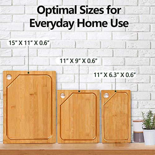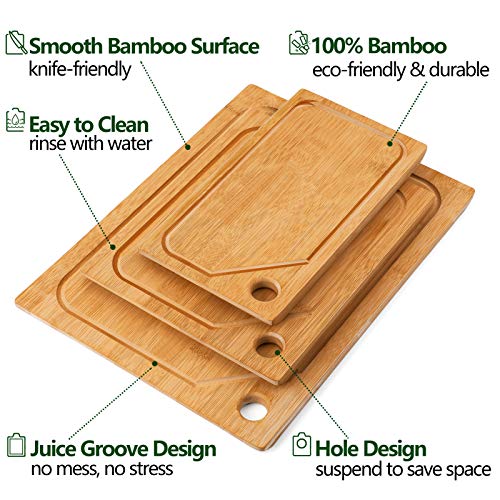 MaxGear - لوح تقطيع خشبي للمطبخ من الخيزران، مجموعة من 3 قطع
