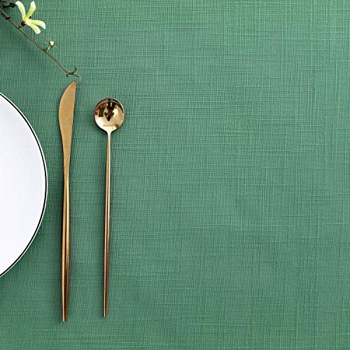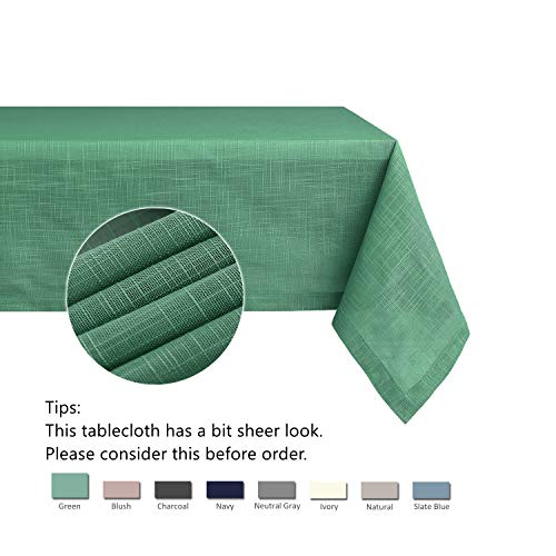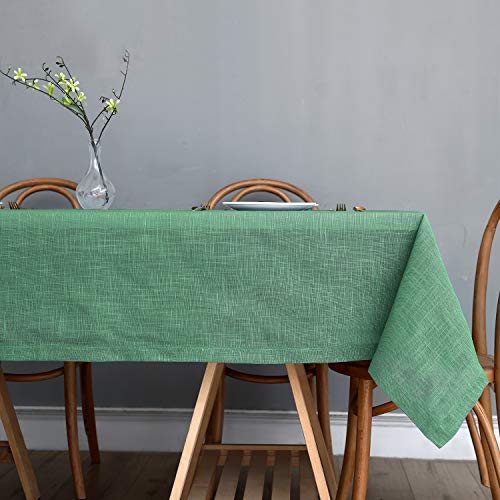 maxmill - maxmill Lux Faux Linen Table Cloth with Slubby Yarn Textured Weaves Wrinkle Free Anti-Shrink Soft Tablecloth Decorative Table Cover for Outdoor and Indoor Use Rectangle 60 x 104 Inch Green