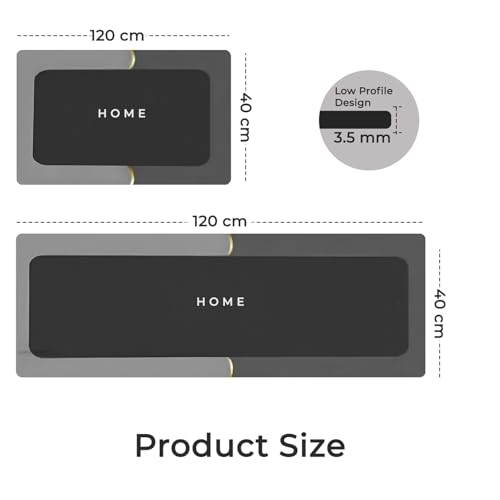 - Runner for kitchen Specification: Size: 120 X 40 CM Units: 2 Colour: Grey Material: Rubber Print: HOME Thickness: 3.5 MM