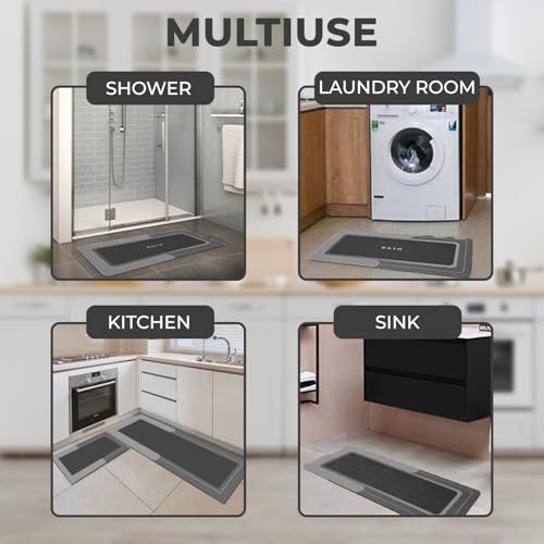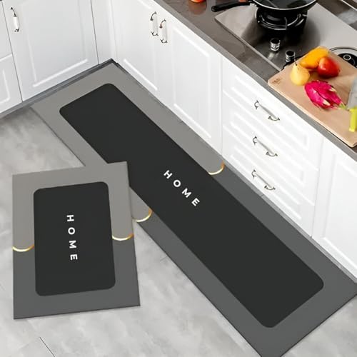 - Double sided no-slip - Our kitchen matt has texture that sticks to floor like glue and waterproof mat. They are easy to maintain and kitchen floor mats anti skid washable enough can be dried in sunlight regularly to avoid it getting stinky. These floor mat for kitchen large size covers enough space of your kitchen.