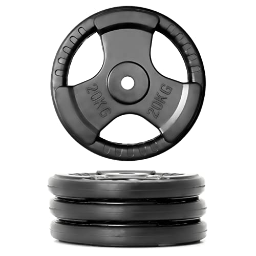 MAXXIVA - Set of 2 Weight Plates 20 kg Cast Iron Gripper Rubber Black 40 kg Fitness Strength Training Bodybuilding Workout Weight Lifting Rehabilitation