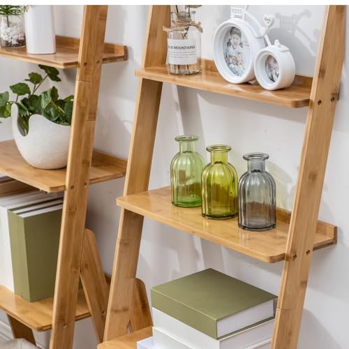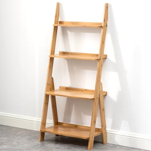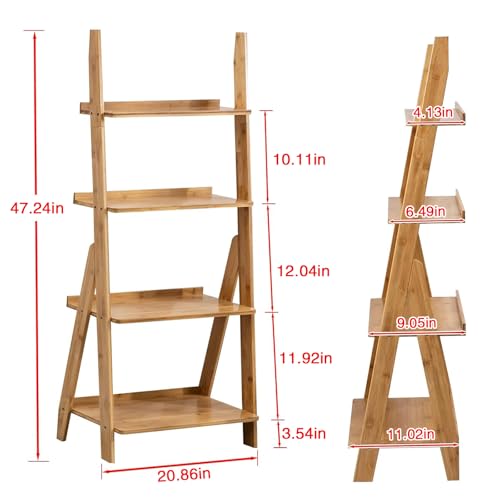 - 【Matches Well With Your Home】:This 4-tier bamboo ladder shelf features a sleek trapezoidal design that fits seamlessly against any wall, maximizing your available space. It provides efficient storage while maintaining a stylish appearance.