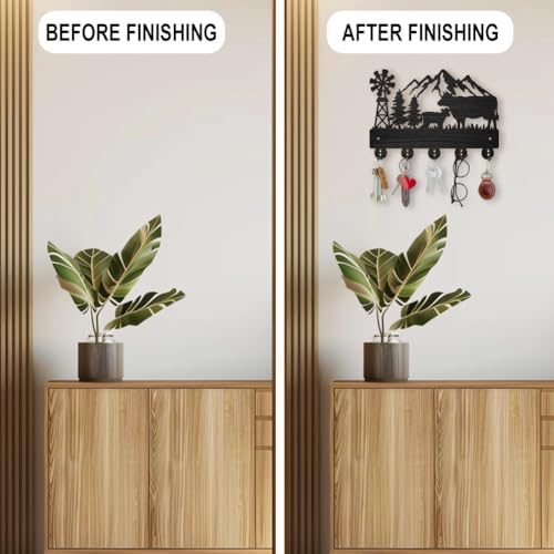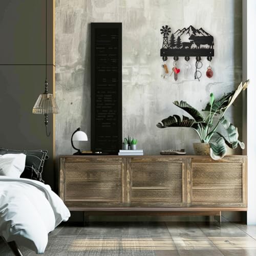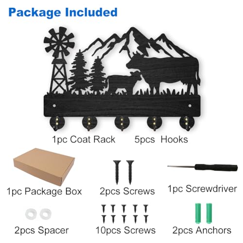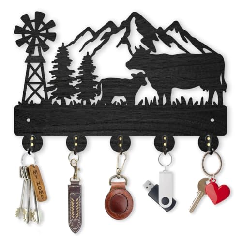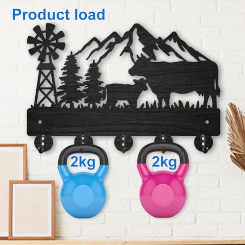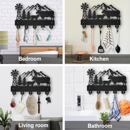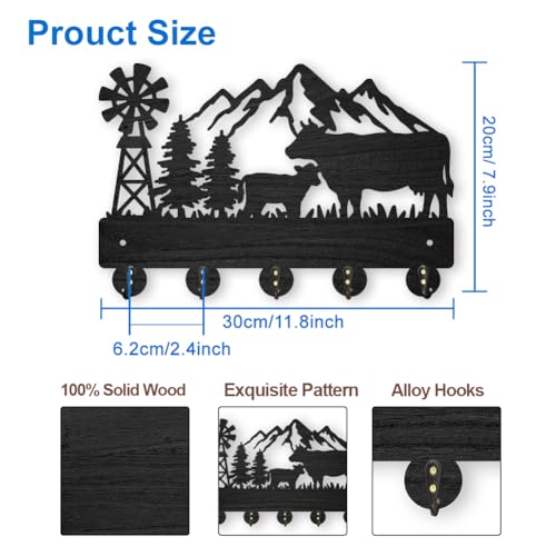 MAYJOYDIY - خطافات معطف بشكل بقرة من ماي جوي دي آي واي حامل مفاتيح خشبي يثبت على الحائط مقاس 30 × 20 سم شكل شجرة جبلية سوداء 5 خليط معدني للهدايا والمدخل وغرفة المعيشة والمطبخ 35.0 رطل 35.0