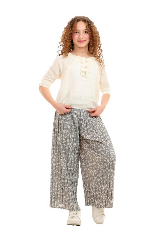 MayMuna - 2795-B Printed Pleated Pants & 3/4 Sleeve Ruffle Blouse Set,Stylish & Breezy Everyday Look For Girls