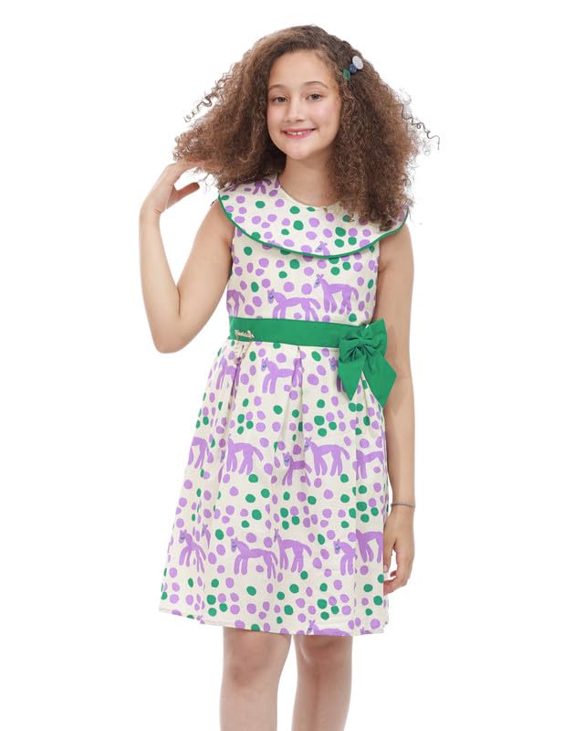 MayMuna - 857-A Sleeveless Poplin Dress with Front Bow, Soft, Stylish & Summer-Ready For Girls
