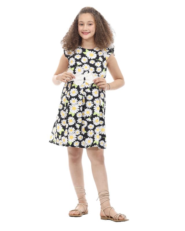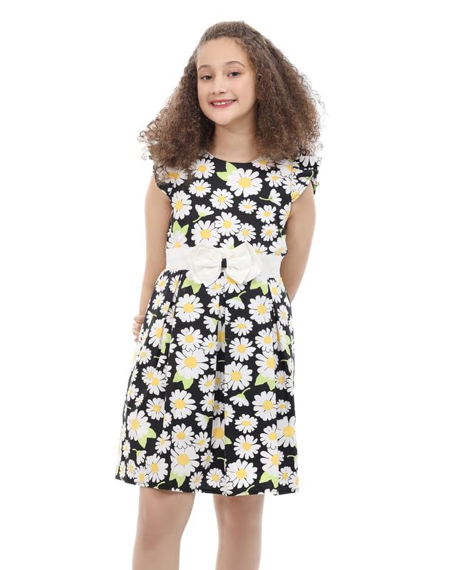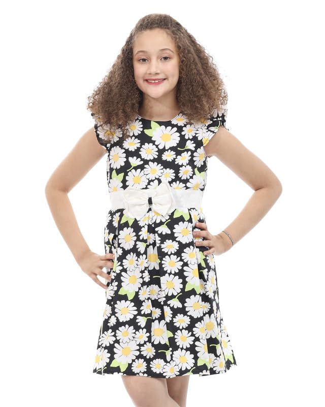 MayMuna - 869 Half-Sleeve Poplin Dress with Front Bow, Elegant, Lightweight & Everyday Chic For Girls
