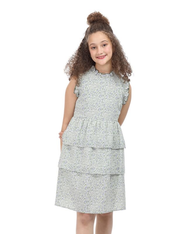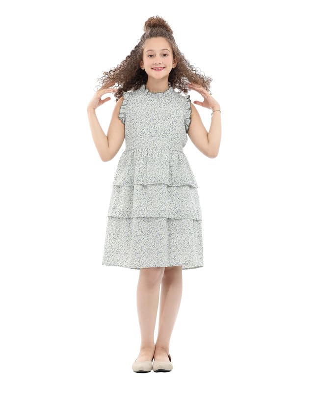 MayMuna - 887 Tiered Sleeveless Dress, Soft Cotton with Fun All-Over Print For Girls