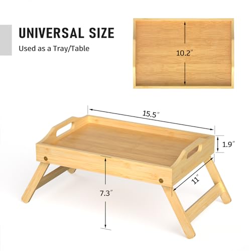 Mayyol - Breakfast Bed Tray for Eating - Foldable Food Laptop Table - Portable Bamboo Raised Serving Tray - Snack Platter with Folding Legs, Eating for Bedroom, Picnic, Sofa - Natural
