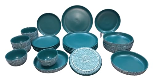 Mazaj - طقم عشاء بورسلين من مزاج 24 قطعة (المحتويات طقم أطباق عبارة عن 6 أطباق عشاء / 6 أطباق حلوى / 6 أطباق غويطة / 6 بولات - أخضر غامق