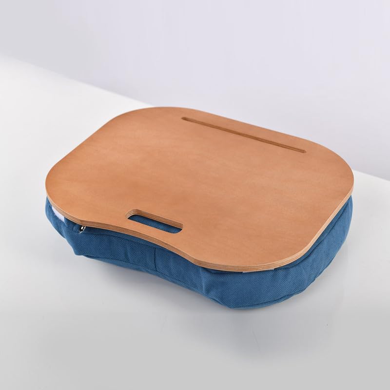 Mazajy - Home Lazylap | Beech Wood | Blue Fabric 47L X 37W Cm Blue Fabric