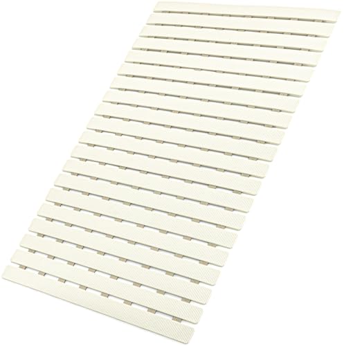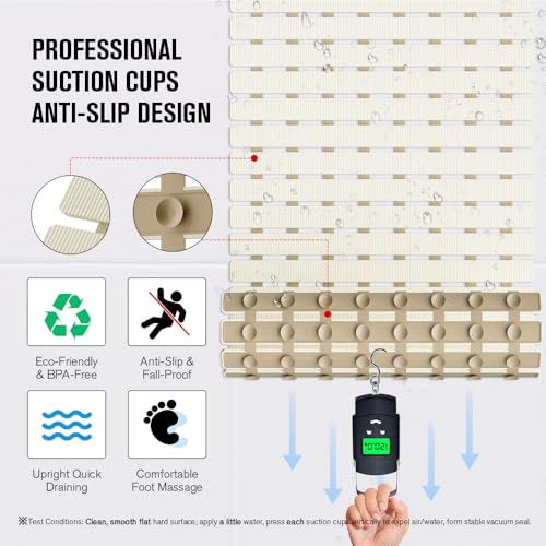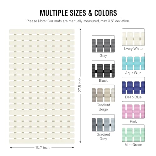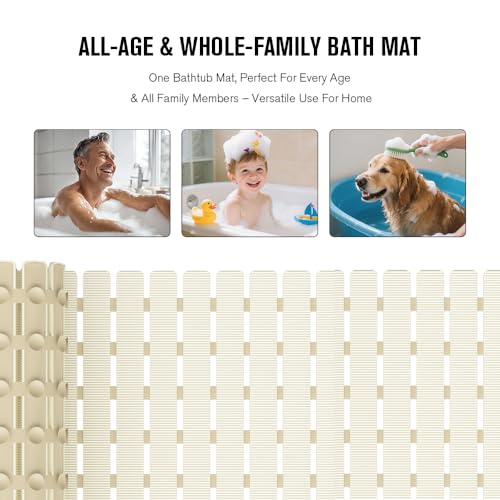 MBOSS - دواسة حمام بتصميم مانع للانزلاق، سجادة للحمام وحوض الاستحمام مزودة بفتحة تصريف وقواعد لاصقة من امبوس، أبيض عاجي، 70 × 40 سم