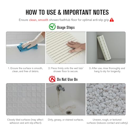 - استخدامات متعددة: متوفرة بالعديد من المقاسات والألوان لتختار من بينها، كما أنها تناسب معظم أحواض الاستحمام والحمام والدش والتواليت. علاوة على ذلك، يمكنك قصها وفقًل لاحتياجاتك. إذا كنت بحاجة إلى مقاس أكبر، يمكنك شراء المزيد من القطع معًا جنبًا إلى جنب.