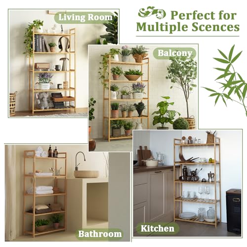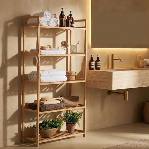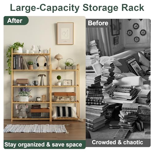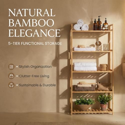 MCBAOB - رف من خشب البامبو من مكباوب، ارفف تخزين للكتب من 5 طبقات، وحدة رفوف للكتب الصغيرة، رف عرض تخزين متعدد الاغراض للحمام والمطبخ وغرفة المعيشة والمكتب (5T- طبيعي)