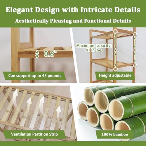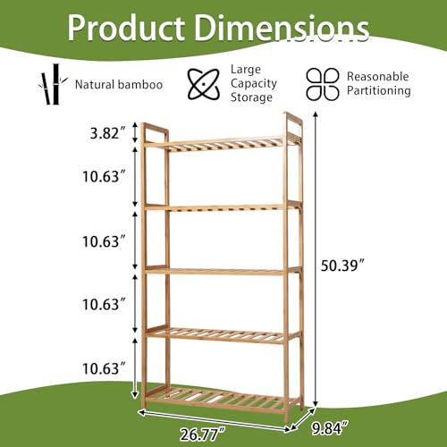 - تصميم متعدد الاستخدامات: يتميز رف الخيزران هذا بحجم صغير 26.75 انش × 9.84 انش × 50.5 انش، مما يجعله مثاليًا للمساحات الصغيرة والزوايا الضيقة.