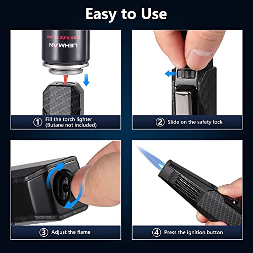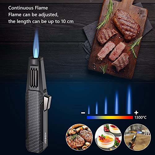 - 【Adjustable Jet Flame Torch Lighter】Windproof and powerful flame temperature can reach 1300 degrees, the torch lighter can creat a continuous flame up to 10CM, you can adjust the flame according your needs.