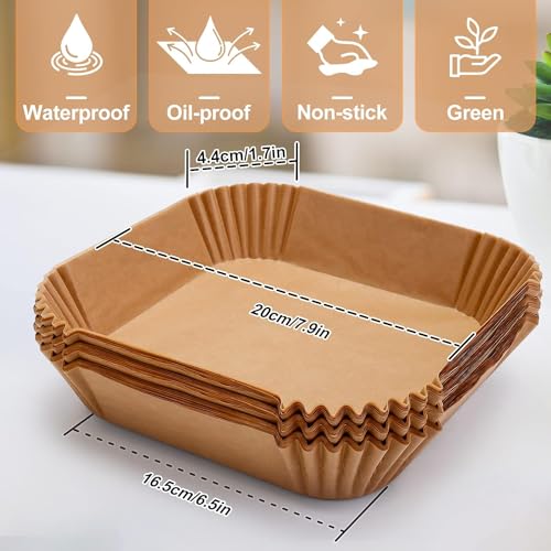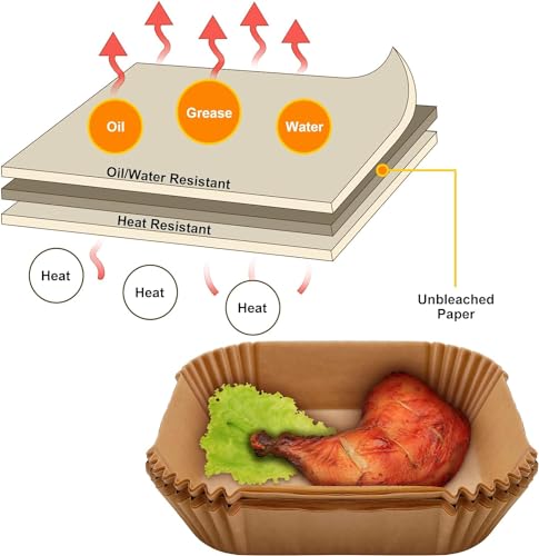 - 【Food Grade Material】The disposable air fryer liners is made of food grade parchment paper, waterproof, greaseproof, non-stick, 100% healthy, with good heat resistance, can withstand 220 degrees Celsius, and retains the original flavor of the food.