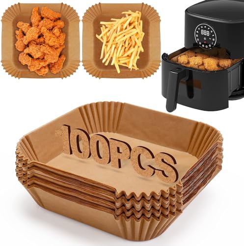 McMola - McMola 100 Pcs Air Fryer Liners, Air Fryer Accessories, Air Fryer Disposable Parchment Paper Liner, Compatible with Ninja AF300UK AF400UK, Salter and Other Dual Zone Air Fryer(7.87in/20cm Square)