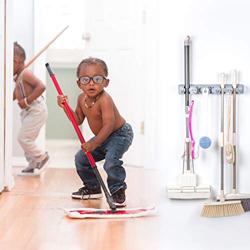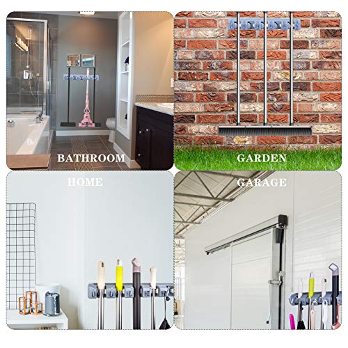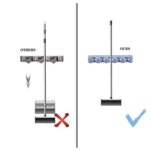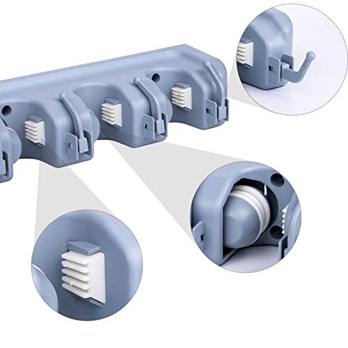 Spaceshoop - MCOMCE Broom Holder Wall Mount, Broom Holder with 5 Positions and 6 Hooks, Broom and Mop Holder Wall Mounted for Garage, Home & Garden Tool Organizing, Practical Mop and Broom Holder Wall Mount(Gray)
