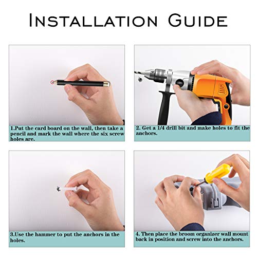 - Wall Mounted Design: This broom holder is wall mounted for convenient storage and organization.