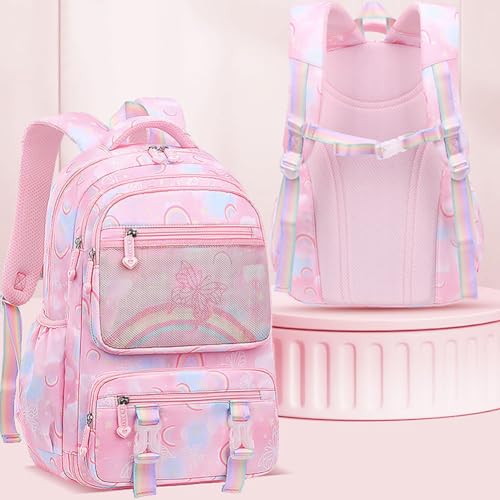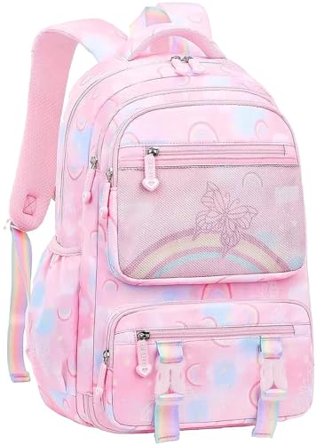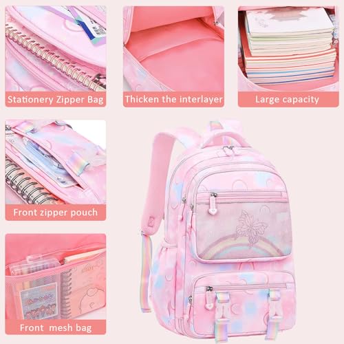 MCWTH - MCWTH School Backpack for Girls, Lightweight Waterproof Cute Butterfly School Bookbag for Teen Kids Students Elementary (Butterfly Pink)