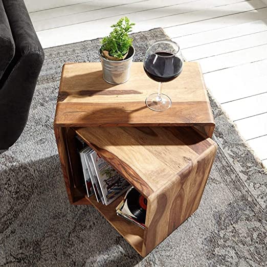 Md Decor - Sheesham Wood Bedside Table for Bedroom, Nested Cube - Set of 2 | Durable and Sturdy End Table | Home Decor Coffee Table | Night Stand 39" (Natural Finish)
