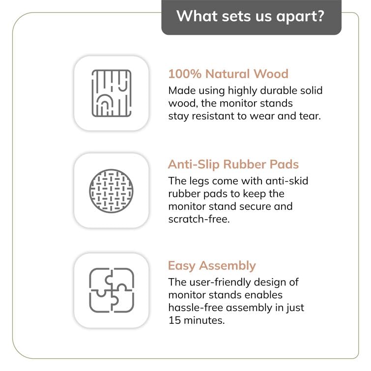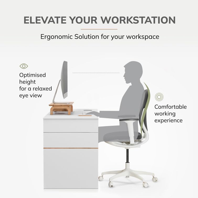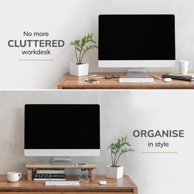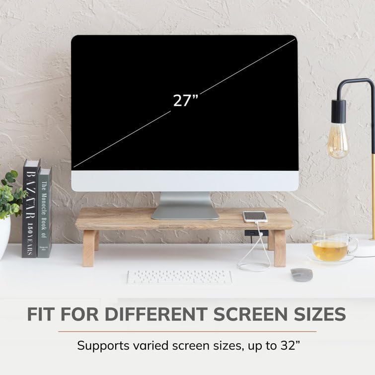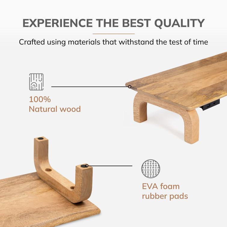 Md Decor - حامل شاشة من خشب شيشام الصلب من ام دي ديكور مع منظم تخزين للمكتب والطاولات والمكتب والمنزل والاستوديو وطاولة الدراسة | حامل شاشة مريح لسطح المكتب (طبيعي)