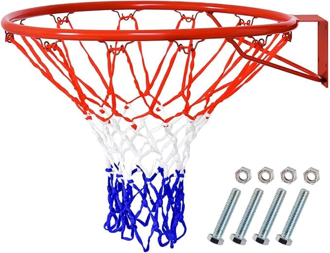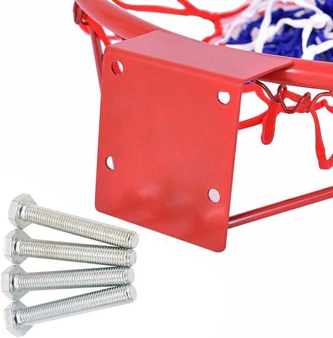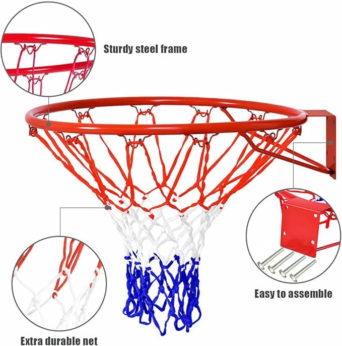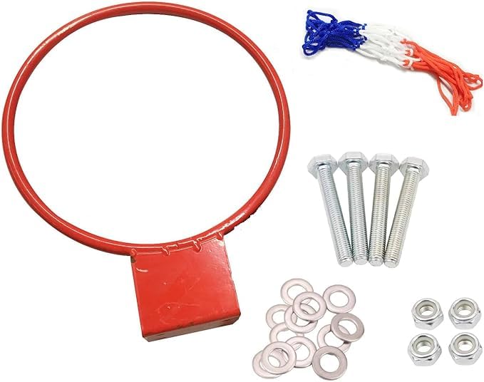 - COMPLETE SET: Includes mounting hardware, red-coated steel rim, and a tri-colour net in white, red, and blue for immediate installation