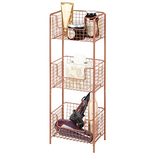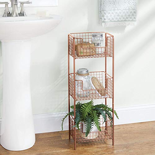 mDesign - mDesign Free-Standing Metal Bathroom Shelf – Rust-Resistant Shelf for The Bathroom with 3 Baskets for Towels, Shampoo and Soap – Also Suitable for Kitchen Storage – Copper