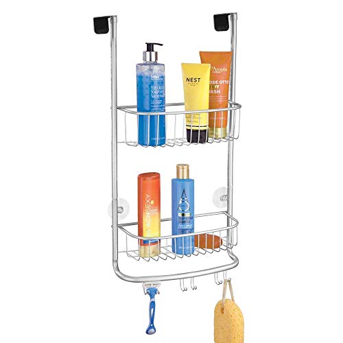 - SPACIOUS: This shower caddy offers plenty of room for your bathroom accessories. It consists of 2 baskets for your shampoos, and 6 hooks for your washcloths or scrubs, as well as a towel holder.