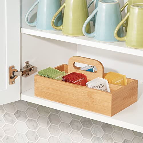 mDesign - منظم مطبخ مع 6 مساحات تخزين لحمل السكر والملح والفلفل وأدوات تناول الطعام وغيرها من ملحقات الطعام، صندوق تخزين للمطبخ مصنوع من الخيزران من ام ديزاين - لون خشبي طبيعي