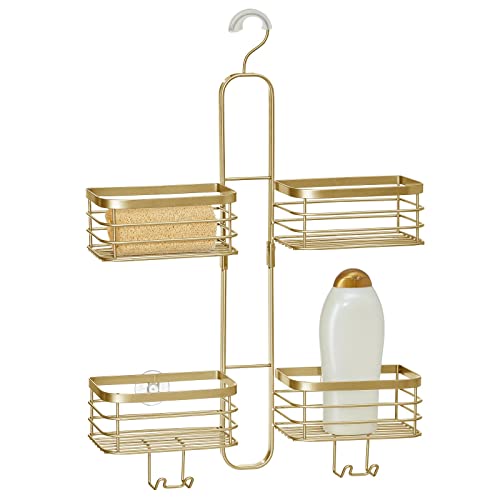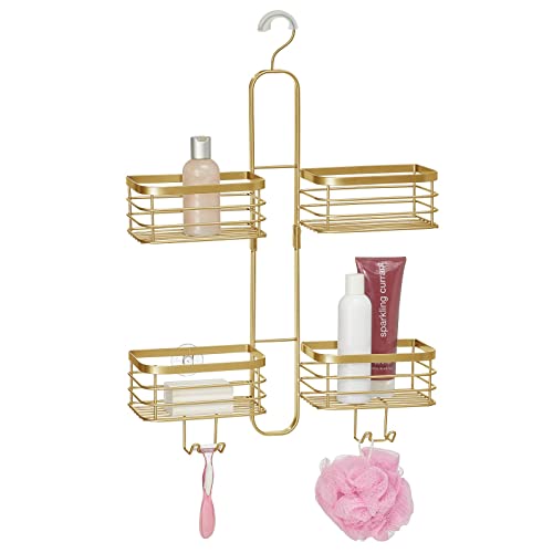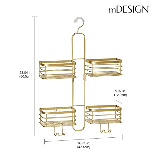 mDesign - mDesign Metal Steel Hanging Shower Caddy, 4 Basket Organizer Rack for Bathroom; Hold Handheld Shower Head, Hose, Shampoo, Conditioner, Shaving Cream, Soap, Loofah - Carson Collection - Soft Brass