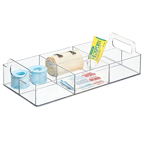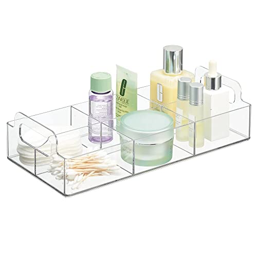 mDesign - mDesign Plastic Bathroom Vanity, Cabinet, Countertop Organizer Storage Station Makeup Holder - Holds Eyeshadow Palettes, Nail Polish, Cotton Swabs, Vitamins, First Aid - Clear