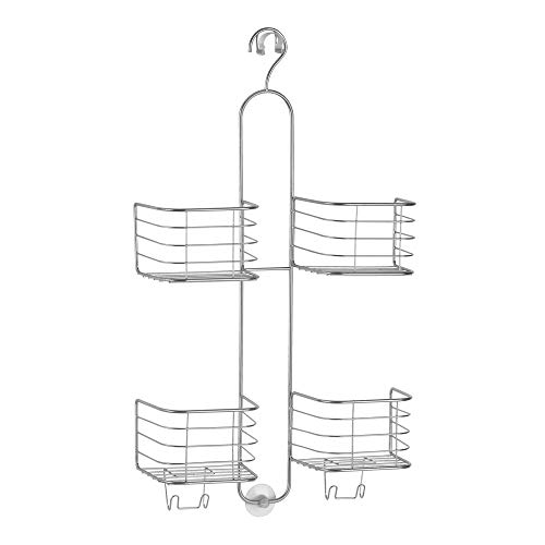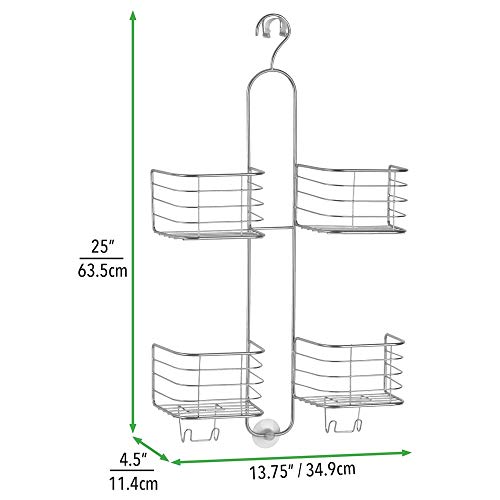 mDesign - حامل دش عملي - رف دش مصنوع من الصلب المتين - حامل دش مرن مع سلات وخطافات من ام ديزاين - فضي