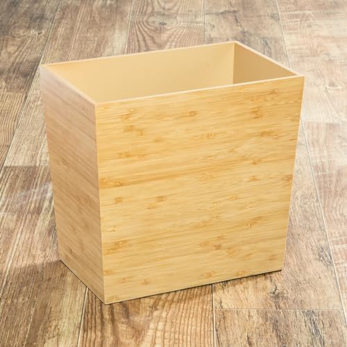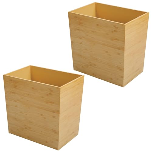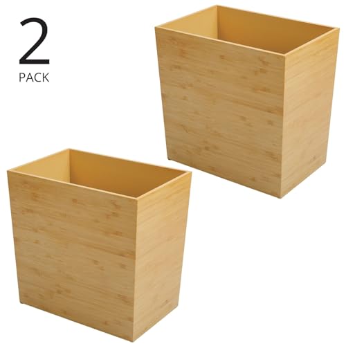 mDesign - سلة مهملات مستطيلة ضيقة من إم ديزاين حاوية صغيرة لحفظ القمامة للحمامات والمطابخ والمكاتب المنزلية وغرف الحرف اليدوية وقشرة الخيزران عبوة قطعتين - طبيعية خشب