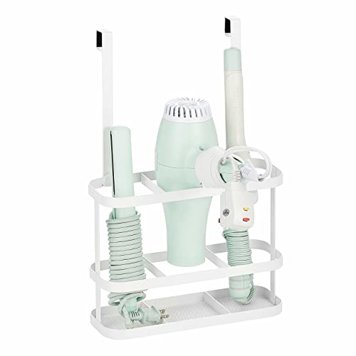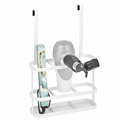mDesign - mDesign Steel Bathroom Over Cabinet Door Hair Tool Storage Organizer Accessory Basket Tray, Hang Holder for Hair Dryer, Straightener, Curling Iron, Styling Products, Carson Collection, White