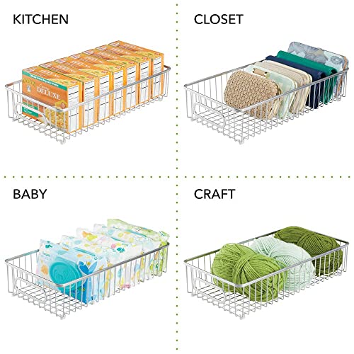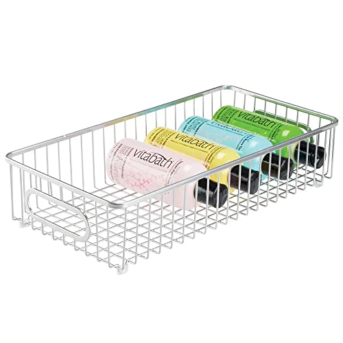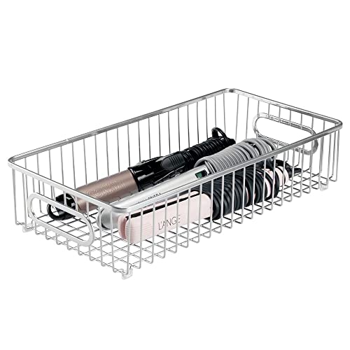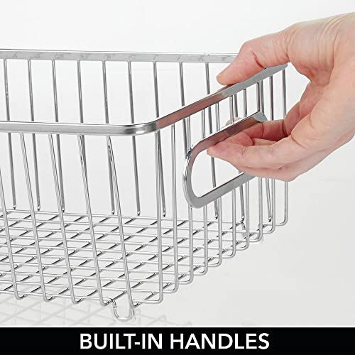 mDesign - mDesign Storage Basket – Wide Metal Wire Basket for Household Storage – Ideal Bedroom and Bathroom Organiser – Silver