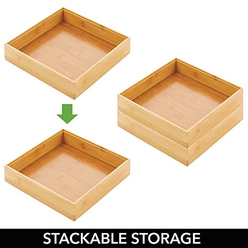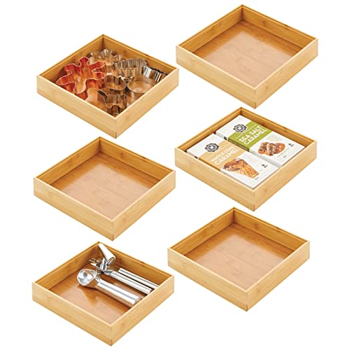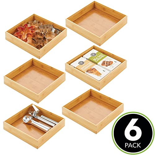 mDesign - mDesign Wooden Bamboo Drawer Organizer - 9" Square Stackable Storage Box Tray for Kitchen Drawers/Cabinet - Utensil, Silverware, Spatula, and Flatware Holder - Echo Collection - 6 Pack, Natural Wood