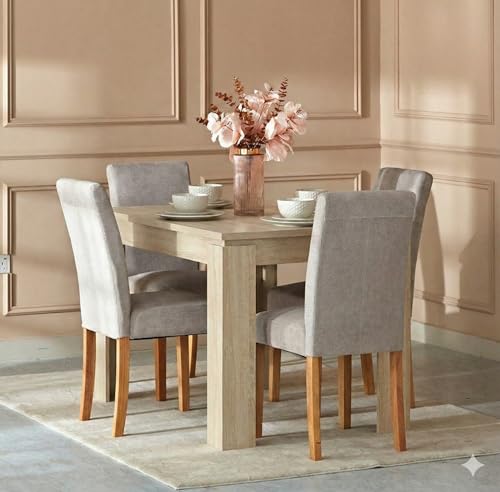 Generic - طاولة طعام من خشب MDF و 4 كراسي كتان، مقاس 120×80×76 سم (بيج ورمادي فاتح)