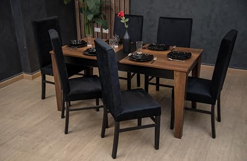 Generic - MDF Dining Table for 6 Persons – Classic Design and Elegant Velvet Upholstery