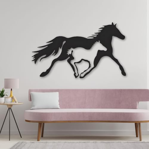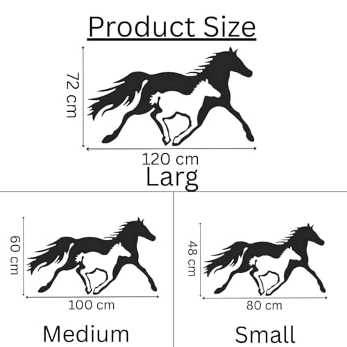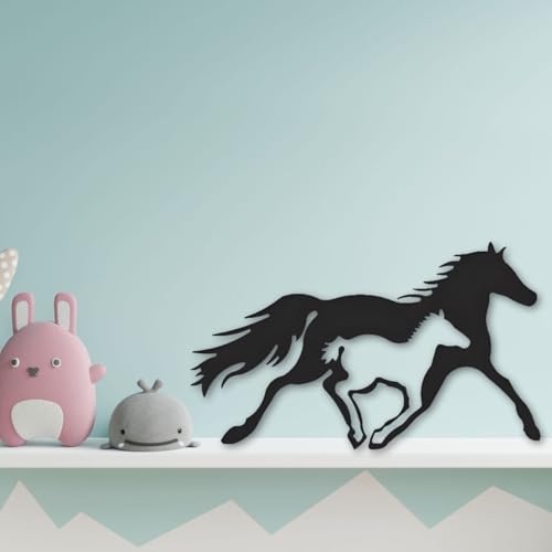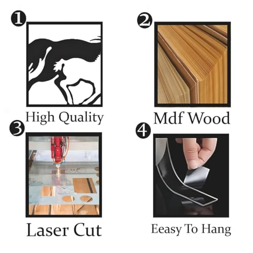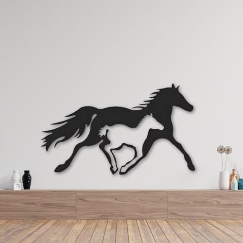 Generic - لوحة فنية جدارية على شكل حصان من ام دي اف، صورة ظلية سوداء بتصميم مهر، متوفرة بـ 3 احجام - L 120×72 سم، M 100×60 سم، S 80×48 سم، ديكور منزلي عصري (مقاس L)