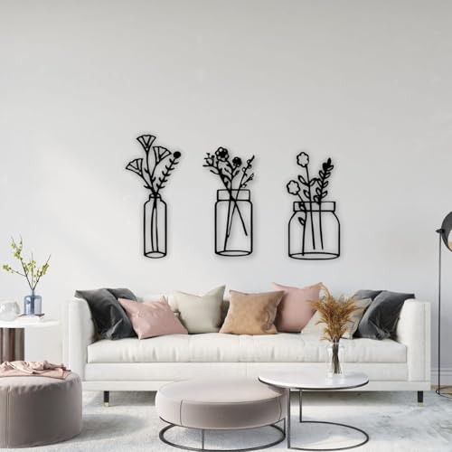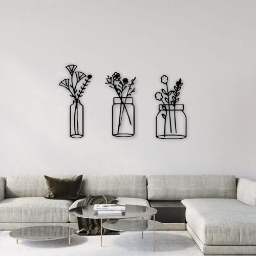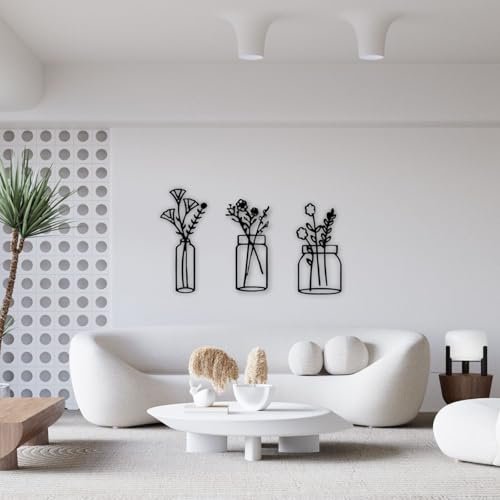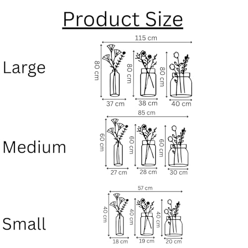 Generic - MDf Wall Art Floral Vases Set, Black Silhouette Decor, 3 Pieces, Large 115x80cm Medium 85x60cm Small 57x40cm (Medium)