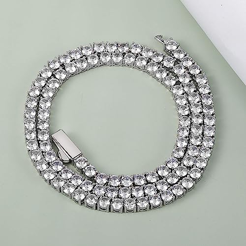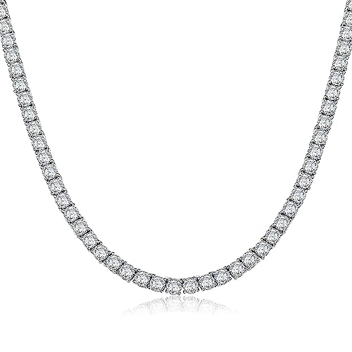MDFUN - MDFUN Classic Diamond Tennis Necklace For Women and Men, 18K White Gold Plated Sparkling 4mm Round Cut Cubic Zirconia Chain (22 inches, spring clasp chian)