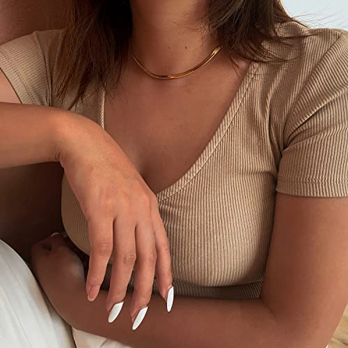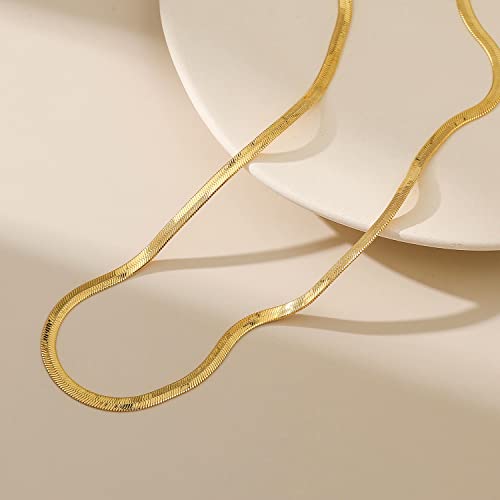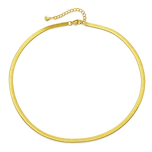 MDMOST - Women Gold Snake Chain Necklace Choker 4mm Flat Herringbone 18K Gold Filled Dainty Boho Simple Delicate Handmade Jewelry
